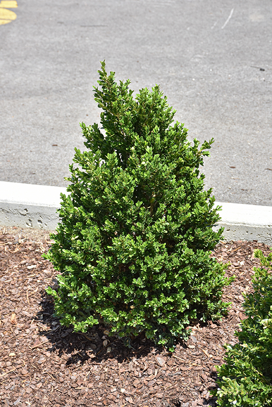 A compact boxwood hybrid with a fine texture, an attractive pyramidal shape even without pruning and emerald green leaves; a true multi-purpose shrub for landscape use, makes a great formal hedge or screening