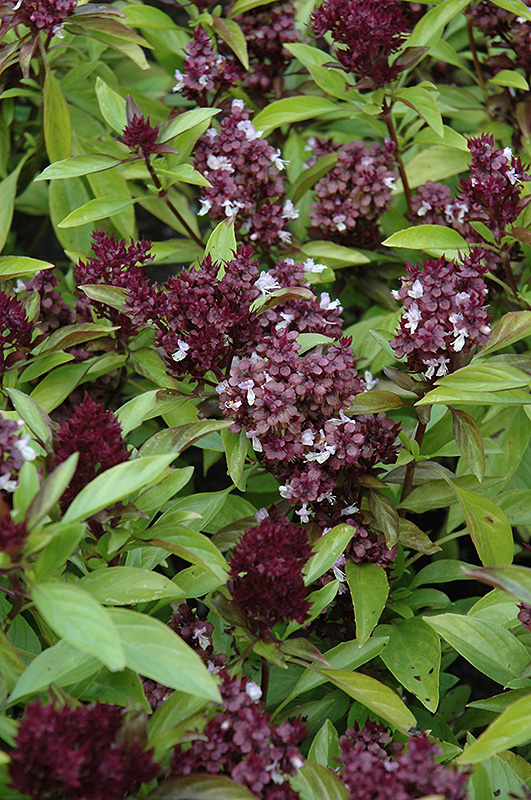 Siam Queen Basil is an annual herb that is commonly grown for its edible qualities, although it does have ornamental merits as well. The fragrant pointy dark green leaves are usually harvested from early summer to early fall. The leaves have a spicy taste.