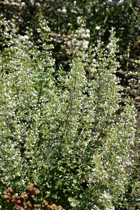 White Cloud Dwarf Calamint features dainty spikes of white trumpet-shaped flowers rising above the foliage from early summer to early fall. Its fragrant oval leaves remain bluish-green in color throughout the season.