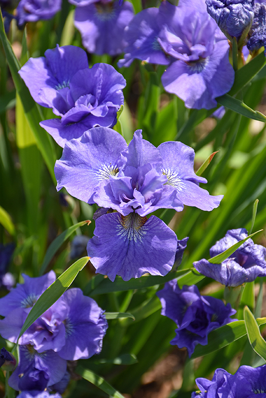 Double Standard Siberian Iris has masses of beautiful double blue flag-like flowers with violet overtones, gold throats and a white flare at the ends of the stems from late spring to early summer, which are most effective when planted in groupings. The flowers are excellent for cutting. Its sword-like leaves remain green in color throughout the season.
