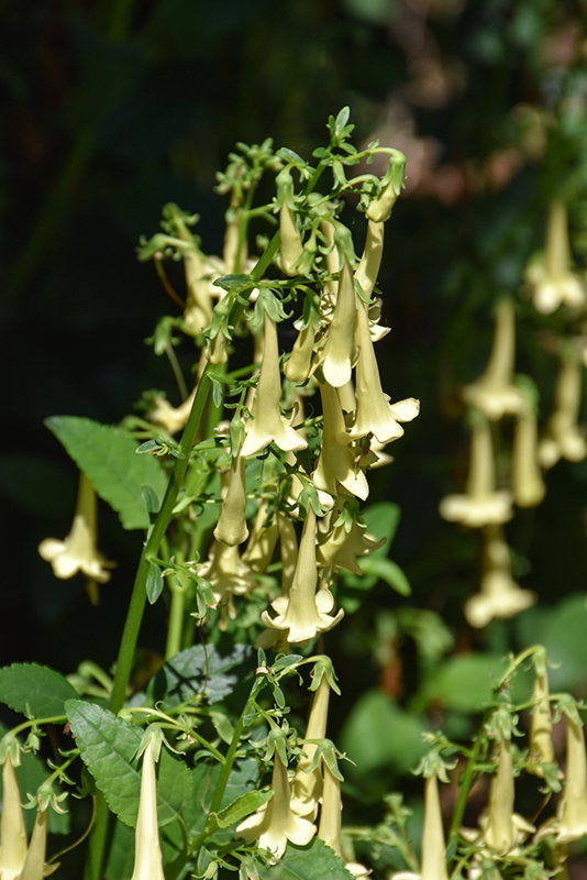 An easy-care variety, presenting showy clusters of dangling, yellow tubular flowers; a sensational show from midsummer into fall; great along borders or in containers; may remain evergreen in mild winter regions