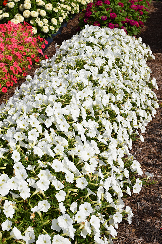 ColorRush™ White Petunia is a dense herbaceous annual with a mounded form. Its medium texture blends into the garden, but can always be balanced by a couple of finer or coarser plants for an effective composition.