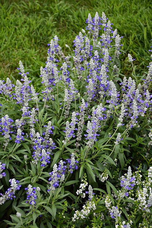 Sallyfun™ Blue Ice Salvia will grow to be about 24 inches tall at maturity, with a spread of 24 inches. When grown in masses or used as a bedding plant, individual plants should be spaced approximately 18 inches apart. It grows at a fast rate, and under ideal conditions can be expected to live for approximately 5 years. As an herbaceous perennial, this plant will usually die back to the crown each winter, and will regrow from the base each spring. Be careful not to disturb the crown in late winter when it may not be readily seen!