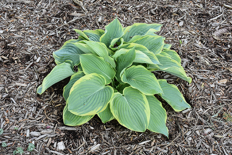 A beautiful extra large variety featuring dense mounds of powder blue, heart shaped leaves with creamy white margins; lavender flowers appear in mid-summer; adds texture, contrast and color to garden beds; prefers shaded areas