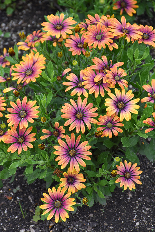 Zion™ Purple Sun African Daisy will grow to be about 18 inches tall at maturity, with a spread of 24 inches. When grown in masses or used as a bedding plant, individual plants should be spaced approximately 18 inches apart. Its foliage tends to remain dense right to the ground, not requiring facer plants in front. Although it's not a true annual, this fast-growing plant can be expected to behave as an annual in our climate if left outdoors over the winter, usually needing replacement the following year. As such, gardeners should take into consideration that it will perform differently than it would in its native habitat.