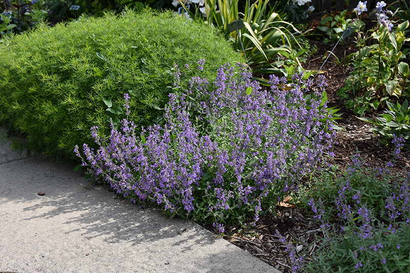 Little Titch Catmint has masses of beautiful spikes of lightly-scented powder blue flowers rising above the foliage from late spring to early fall, which are most effective when planted in groupings. Its tiny fragrant pointy leaves remain grayish green in color throughout the season.